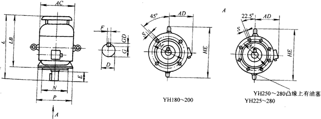 YH系列電動機B5安裝軸伸尺寸與第二軸伸尺寸