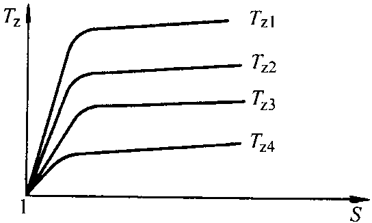 YTDT系列電動機的轉(zhuǎn)矩、轉(zhuǎn)速特性(T-S曲線)(見圖1);電動機采用能耗制動時的特性曲線(低速時繞組通以不同的直流電可獲得不同的制動轉(zhuǎn)矩)(見圖2)。