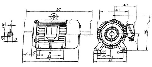 電動機的安裝型式B3、B5和B14三種。YT711~712的出線盒在機座上方;YT80~112的出線盒在機座側面。