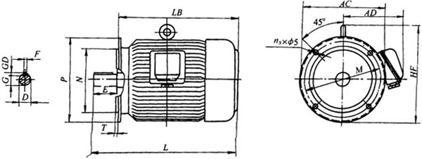 圖4 YT80~112M-H外形尺寸圖(B5)(見表4)