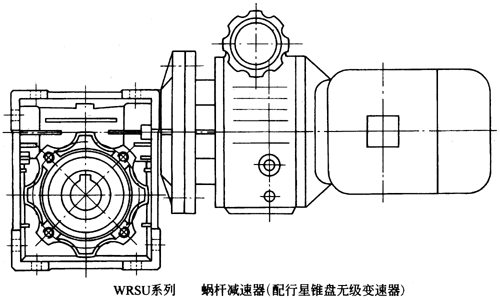 c.常用型號WRSUD系列為電機─變速器─蝸桿減速器組合,也可與雙級蝸桿減速器相聯,備有底腳安裝(WRSU、WRSUD系列)和法蘭安裝<WRSUF(L)、WRSUF(L)D系列>型式。動力輸入為電機直聯,也可采用輸入軸方式(WRSU系列),備有多種轉矩輸出結構,滿足各種聯接要求。箱體外形設計及底腳孔設置布局適應較小安裝空間及多種安裝方位,通用性強。
